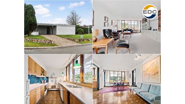 Her får I en arkitekttegnet perle fra 70erne med fine detaljer såsom indbygningsskabe, fladt tag og store vinduespartier. Skal det være jeres næste hjem?