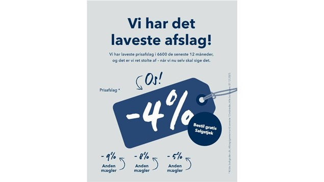 Vidste du godt at vi er den mægler med det laveste prisafslag de seneste 12 måneder?
