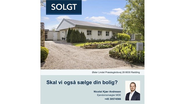 Nicolai har været på banen igen, og denne gang blev det Øster Lindet Præstegårdsvej 28 i Øster Lindet, som Nicolai kunne sætte et solgt skilt på