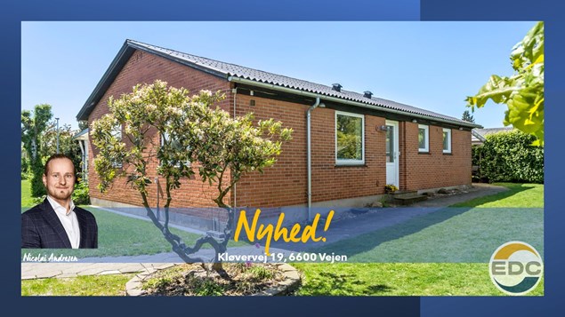 Étplansvilla i Vejen med moderne køkken og sydvendt have på markedet for 1.295.000 kr.