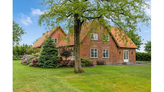 Flot murermestervilla med dobbelt garage og parklignende have til salg i Rødding