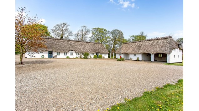 Ny pris på charmerende stråtækt ejendom med masser af plads til hobby, heste og familie