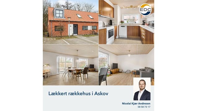 EDC Vejen fremhæver et rækkehus til salg på Vejenvej 36F i Askov, Vejen. Huset er kendt for sine gedigne materialer og en god planløsning. Det har et boligareal på 90 m² og er til salg for 1.395.000 kr. Interesserede kan booke en fremvisning ved at kontakte dem direkte.