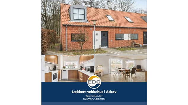 EDC Vejen fremhæver et rækkehus på Vejenvej 36F, Askov, der er bygget med gedigne materialer og har en god planløsning. Ejendommen er på 90 m², har energimærke C, og prisen er 1.395.000 kr. For mere information, se det oprindelige opslag.
