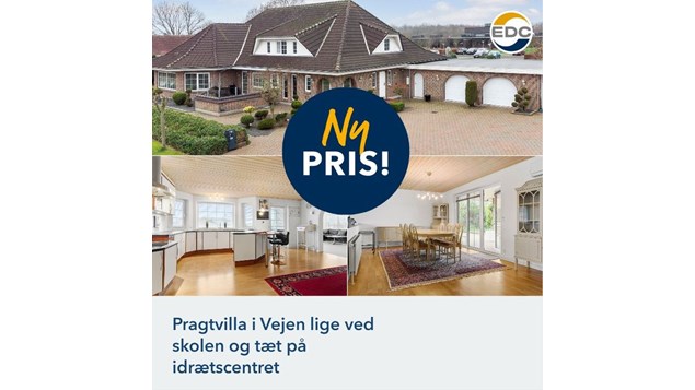EDC Vejen annoncerer en prisændring på en rummelig villa beliggende på Grønvangen 23, Vejen. Villaen, der har et boligareal på 334 m², er nu til salg for 2.995.000 kr. For yderligere information kan du læse det oprindelige opslag.