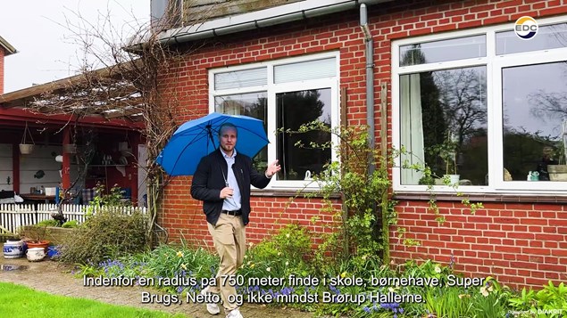 På en central adresse i Brørup – med kort gåafstand til alle nødvendige faciliteter – finder I denne rummelige familievilla med en tilhørende sydvendt have og en hyggelig overdækket terrasse.