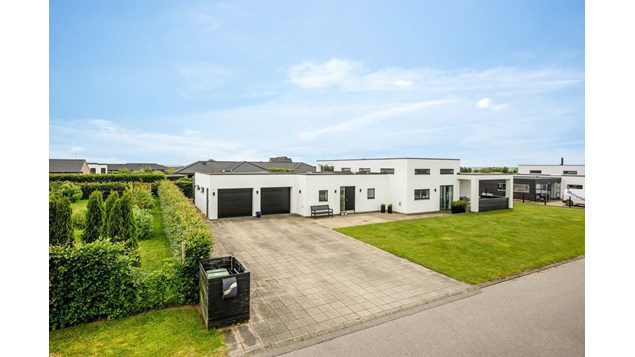 ! NYHED ! -Stor dobbelt garage, perfekt planløsning og nem have med gode terrasser