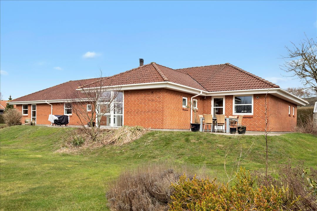Denne solide og fuldmurede villa med gulvvarme fremstår særdeles velholdt, så den er klar til en familie, der er på udkig efter masser af plads. Her er fem værelser, to badeværelser og en dejligt lys opholdssektion med åbent flow mellem køkken og stueområder, hvilket giver frihed til at indrette sig på flere forskellige måder. I får også et praktisk og temmelig rummeligt bryggers, der er slået sammen med entréen ved hovedindgangen, mens der er flere andre udgange til terrasserne; blandt andet fra soveværelset til en østvendt morgenterrasse og fra et af de øvrige værelser til en vestvendt terrasse. Også fra stuen er der terrasseadgang, så I vil opleve en fin forbindelse mellem inde og ude.